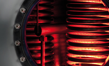 Esta gama de depósitos, puede equiparse con nuestro sistema de serpentines desmontables en acero inoxidable en uno o dos bloques independientes de calentamiento, adecuando la superficie de intercambio (hasta 10 m2 por bloque) a la potencia térmica de la instalación. Están preparados para la incorporación de resistencias eléctricas de calentamiento, tanto para calentamiento de apoyo, como calentamiento principal. Con nuestras resistencias de inmersión en Incoloy 825, pueden alcanzarse potencias eléctricas de calentamiento, hasta los 400 KW. La boca lateral DN400 puede incorporar también